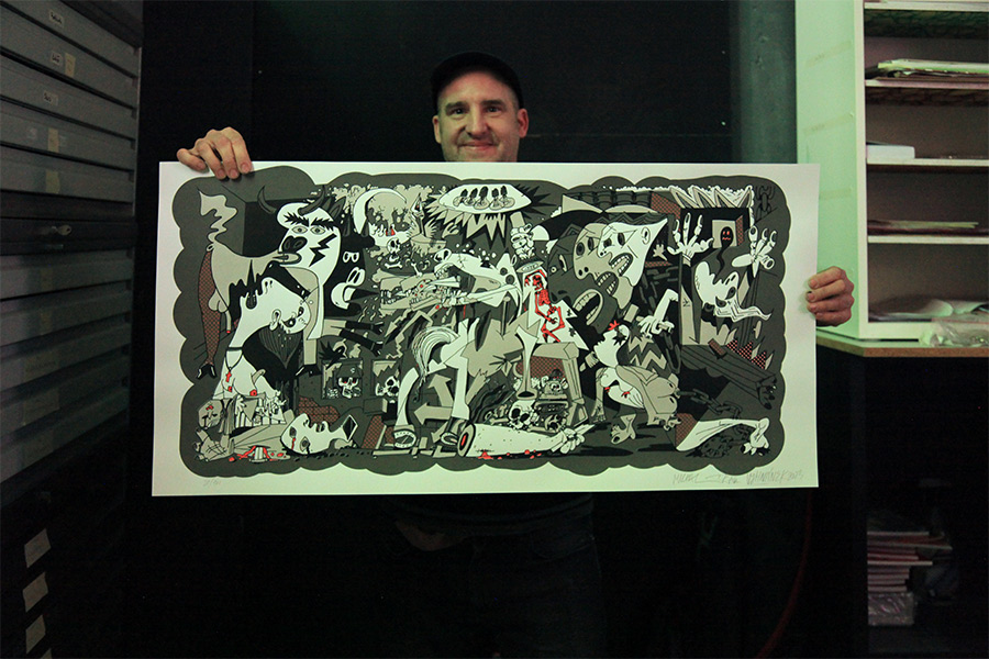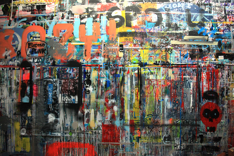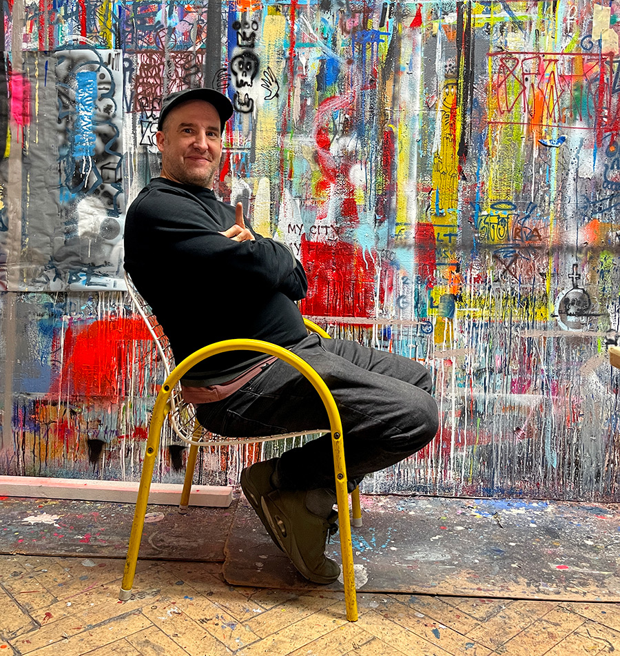 The energy of those years — improvisation, risk, collaboration, and an irreverent sense of possibility — continues to shape his work. He is clear that he is not “bringing graffiti into the gallery,” but rather transforming its mindset: