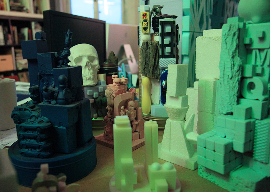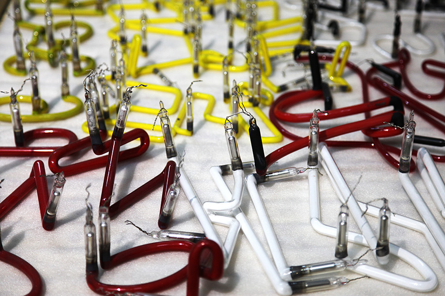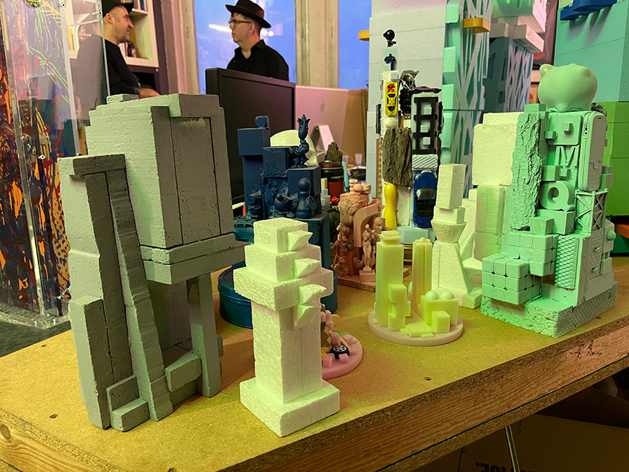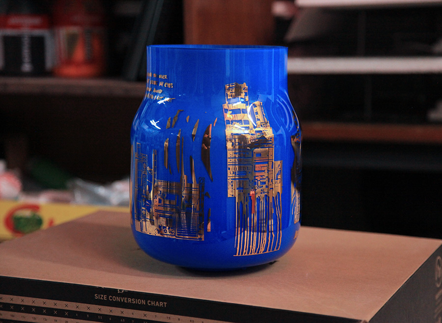 His neon-cube sculptures, glass models, and smoked-glass vessels borrow from Czech glassmaking’s legacy while extending it into a hybrid territory shaped by graffiti structure, sci-fi atmosphere, and architectural imagination.