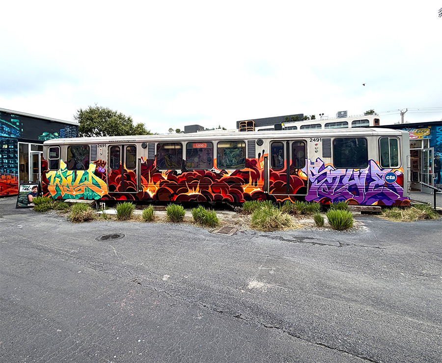 Quake, grounding the program in West Coast graffiti history by painting the Wynwood Walls train in motion, dedicating the piece to his friend and graffiti pioneer Tracy 168