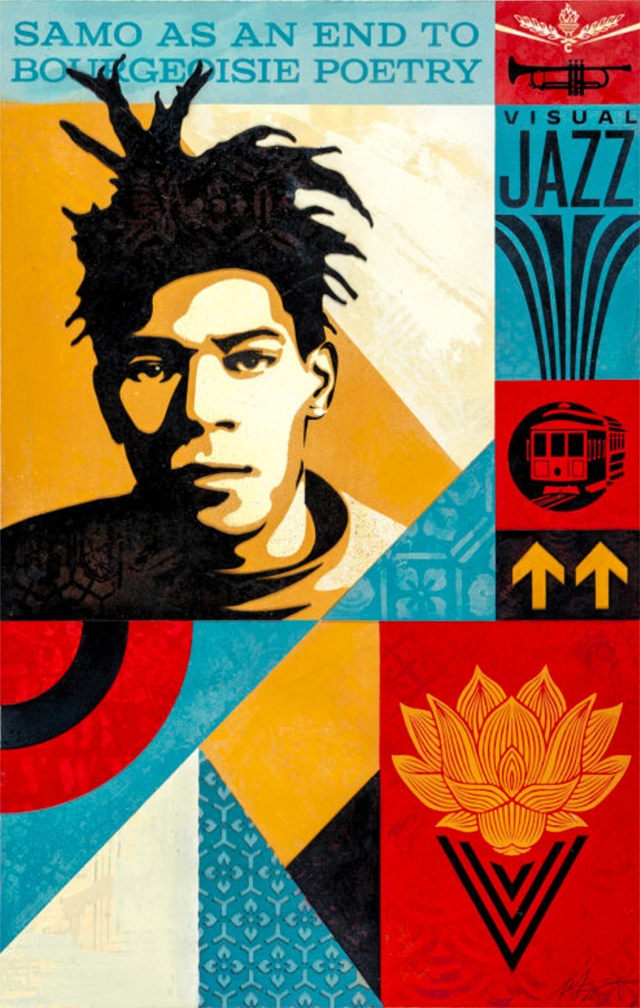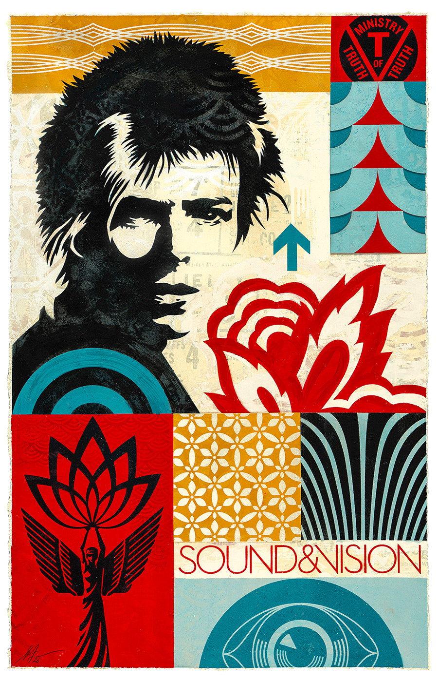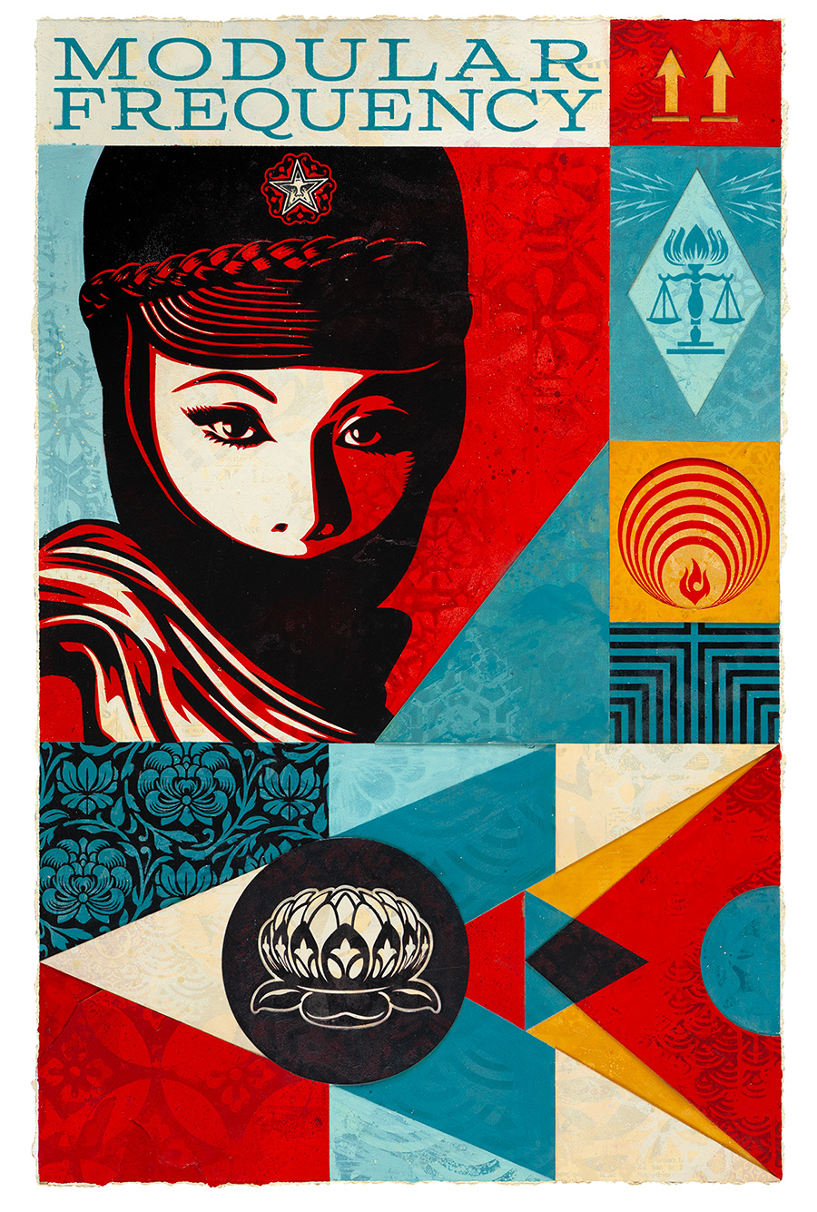 Coinciding with the opening, the project spills into print in a way that echoes the show’s punch and cadence: the two new screenprints Modular Sound & Vision and Dreams of Peace translate the series into collectible form, alongside a letterpress print titled Modular Frequency. And in the wider wake of the exhibition, collaborations extend the conversation—most concretely, the co-signed “Frequency” print with ADD FUEL, which ties Fairey’s modular iconography to a tile-pattern sensibility that feels both ornamental and insurgent.