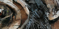 Mathew Curran has spent years exploring the potential in stencil art. An art form that offers technical possibilities of traditional printmaking and also represents a form of urban art, each stencil requires hours of cutting with an unforgiving X-acto blade. His current stencil work negotiates the intersections of natural and urban life. For him, nature is “a background character in every one of our interactions,” regardless of one’s location in the world. To communicate this duality, he has started turning to representations of white-tailed deer and ravens. While the choice of animals as his subject matter may seem to suggest an essential, potentially simpler, state of being, he uses jagged strokes to remind the viewer that the frenzy of urban life is echoed in the chaos of nature. Ravens have a long-standing connotation of death, and he utilizes studies of hunted, dead deer in his compositions. For him, these animals are metaphorical stand-ins for the complexities of survival across habitats and species. In this exhibition, he evolved from his traditional black-and-white palette, and he introduces the color of North Carolina red clay in his works to make specific reference to one of the current background characters of his home and environment.