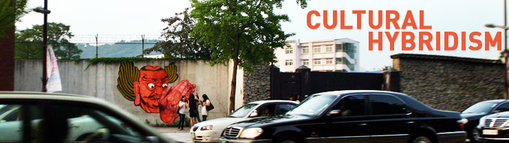 Gaia: The Image of buddhism has returned to the the walls of the palace just a block away from the gate of Gyeongbokgung, the time by the hands of a westerner, and contrasted with praying hands inscribed with the symbols of St Andrew; A portrait of passing times.