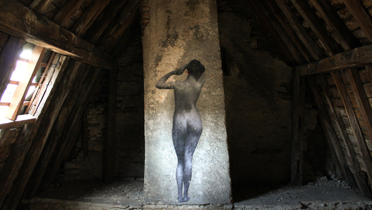 “Pasting those women in a different context where love has been present over several years brings this old building alive again,” she says, and indeed the figures summon you to contemplate them and their natural beauty and the passage of time.