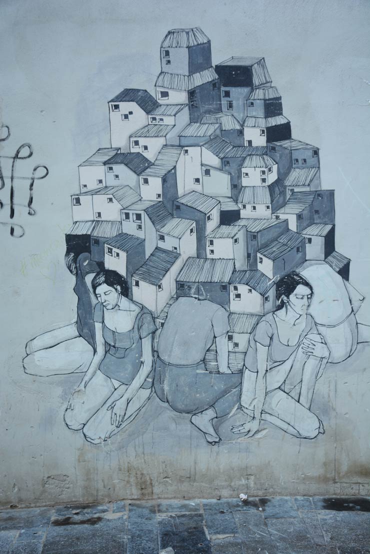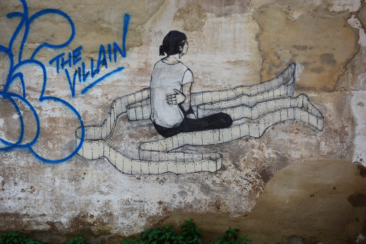 Admittedly it is an unthankable task to try to characterize the urban art of any city, but the eclectic street works like those found in Valencia’s neighborhoods like El Carmen, with its peculiar configurations of streets and plazas and little in-between places, are often a trifle more cerebral in their culmination. With challenging riddles and allegories you’ll find yourself studiously unpacking meanings and subtext with these often small and midsize works that call to you, rather than scream.