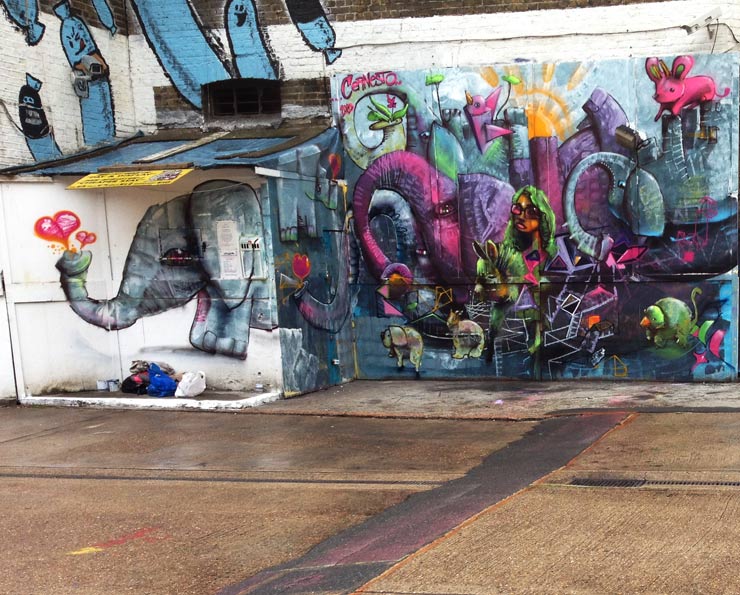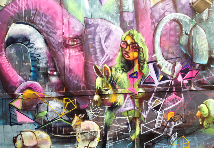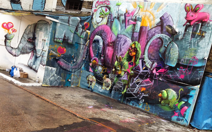 Considering the huge increase in sanctioned walls over the last two years in New York, this work looks surprisingly alive, and is just the sort of balm needed for the raw nerves of anarchists everywhere who have bemoaned the polished soul-deadening mural painting of late. Even if some of this looks sort of slap-dash and ragged in spots, and it does, it also gives off an air of being authentic and in-the-moment.