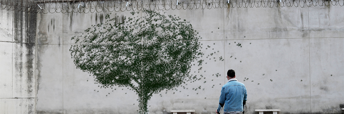Pejac recently completed a series of interventions within the oldest prison in Spain, the Penitentiary Center of El Dueso. Located at the entrance of artist’s hometown of Santander, overlooking the Cantabrian sea and surrounded by marshes, the prison built at the beginning of the 20th century on the remains of an old Napoleon’s fort was another challenging setting to carry out his poetic interventions.