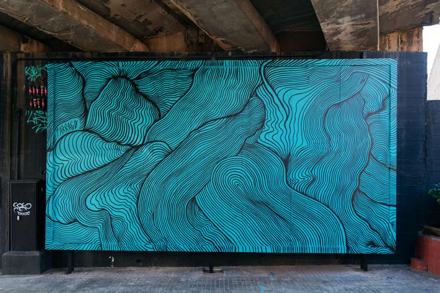 Today we visit the newest installations by Spanish artists who are participating in the community mural project that invites many disciplines and approaches to the public sphere, the “12+1 Project” in Sant Vicenç dels Horts, a neighborhood of Barcelona. In its third year, Contorno Urbano occupies a unique position in the public art world that stays clear of commercialism – as well as Street Art and graffiti – although it borrows from both. Today we see two of the newest participants and their walls.