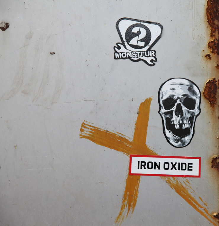 “We are completely amazed by all the stuff here on every level. All the objects, the whole factory,” says Jan, one half of the Polish duo Monstfur as he surveys a rounded tank that they are spraying layers of grey, black, and white to form a stenciled cranium that also matches the one tattooed on his arm.