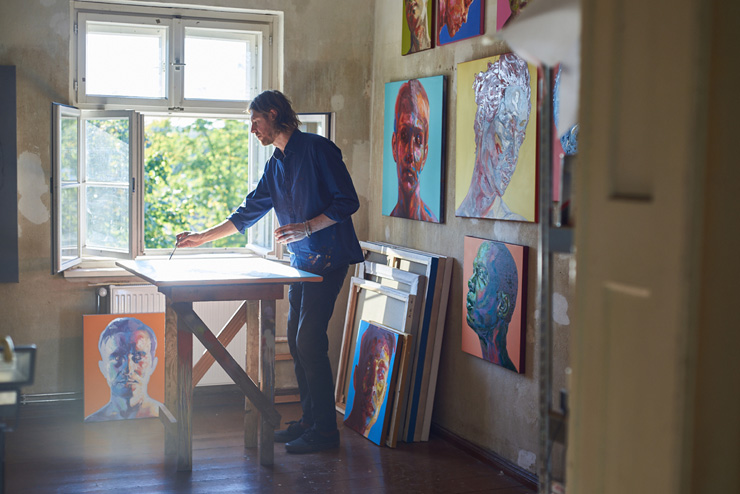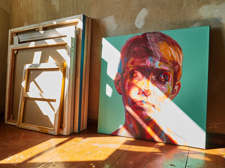 We’re pleased today to bring new works from David Walker in studio as he prepares for his first US solo show at Black Book Gallery in Denver, “Shake Your Skin Loose”. A departure from his style that many have seen in murals in many cities, these new works are less literal, more impressionist; a product of his own “shaking loose” of expectations for his work.