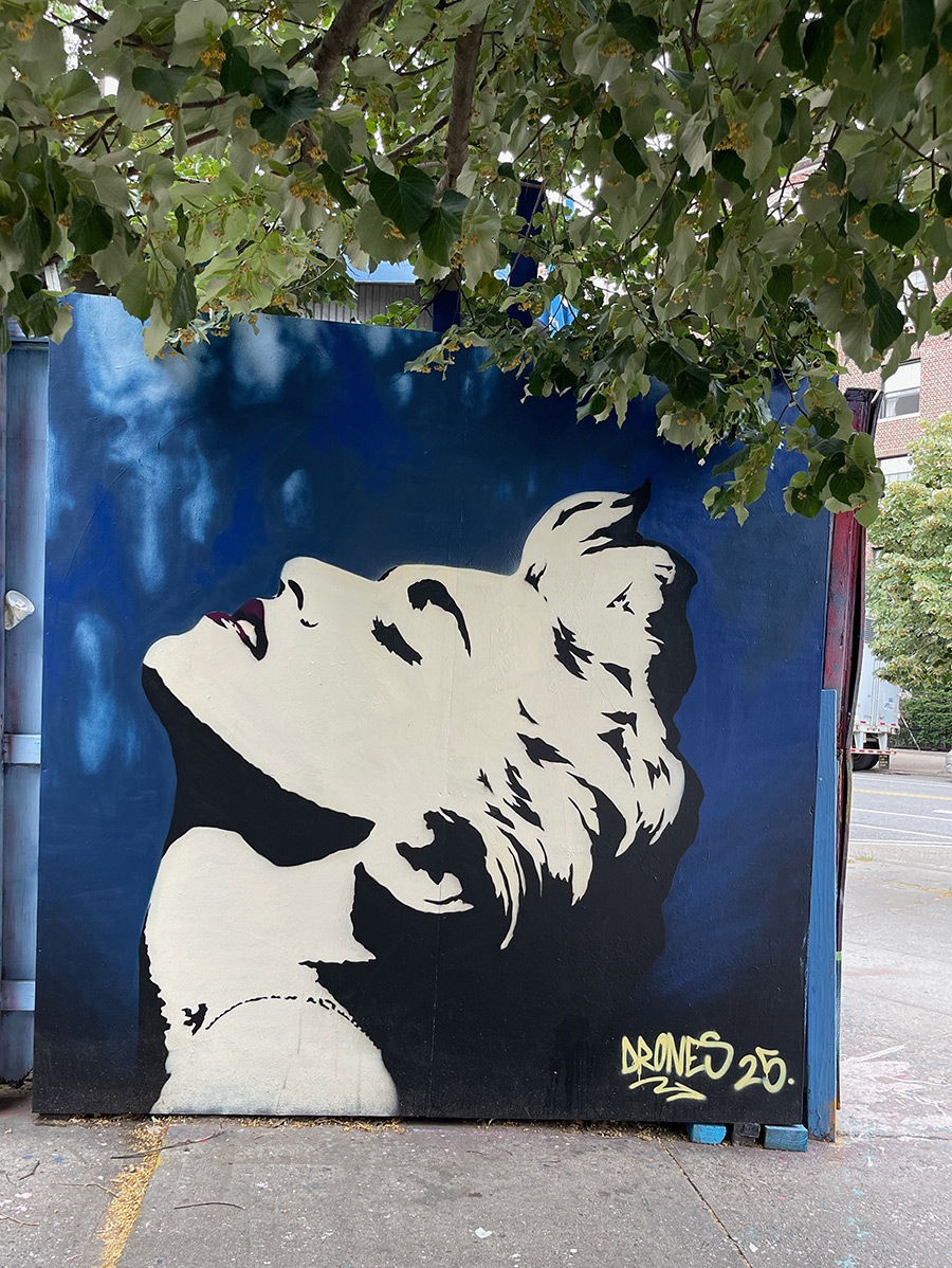 We begin the show with a new portrait of the much-loved graffiti and street art photographer Martha Cooper, based on a photo by Corey Nickols and painted by Swed Oner (Mathieu Taupenas) in Bushwick with Joe Ficalora and the Bushwick Collective by his side. Born in the south of France in the 80s, a graffiti writer in the late 90s, Swed Oner is now known for his hyper-realistic, monochrome portraits of people transformed into religious icons – featuring a “halo” motif for framing.