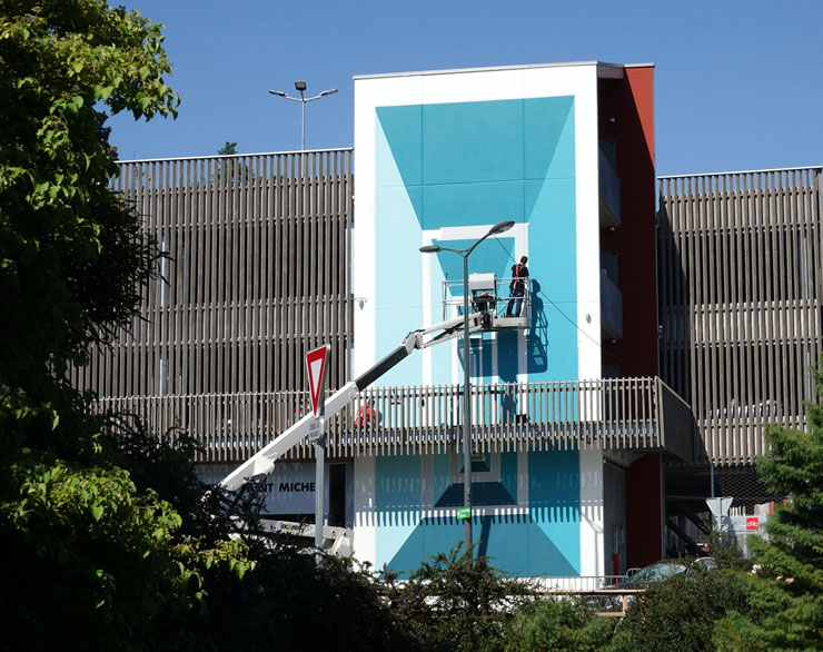 His unique techniques of optical illusion takes you back in space, often leading you to a place that looks like it would be sleekly modern and full of even, calming, light. The city itself has quite a few murals around and is well poised to receive this new art in the streets, facilitated by the Jourdains of Mathgoth Gallery in Paris.