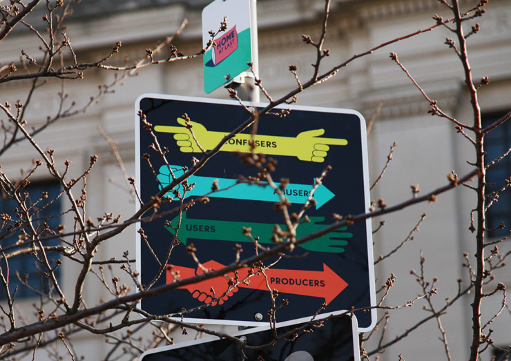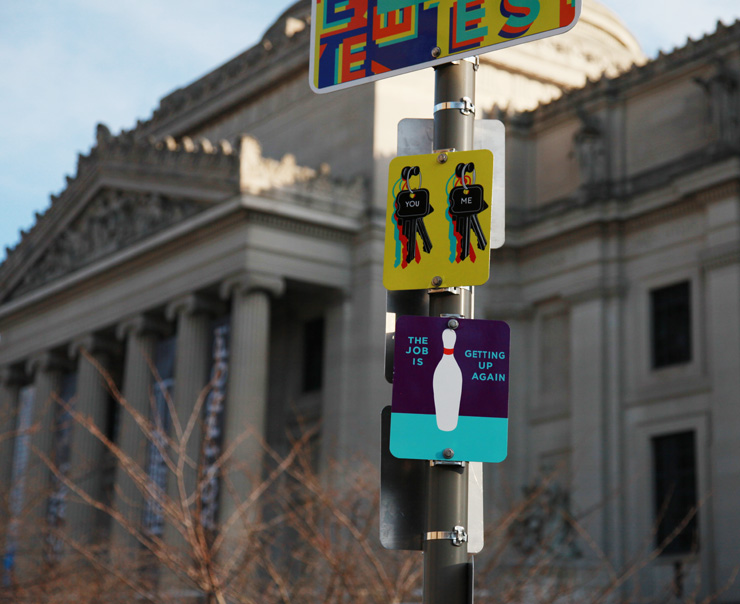 Brooklyn Street Art: How does the space lend to or present a challenge for the displaying of the multiple signs?
