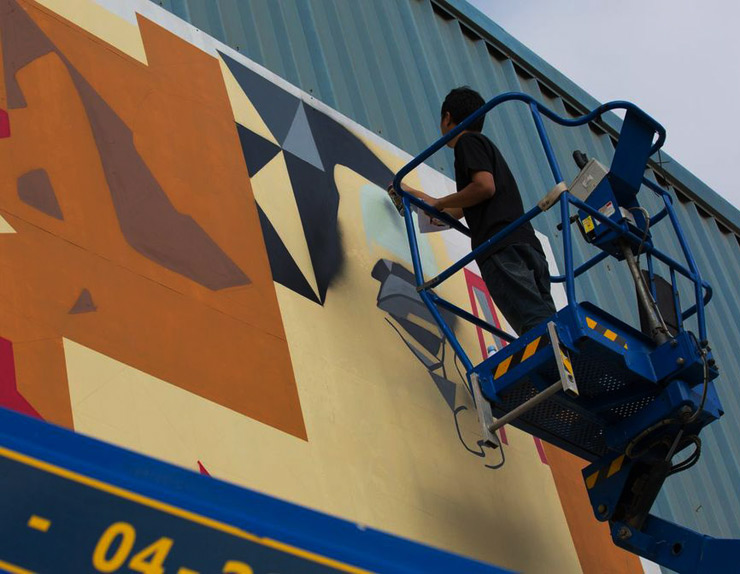 Not painted directly onto buildings but painted onto placards that are mounted on buildings, the QUOZ ARTS FESTIVAL had its second annual installation a little over a week ago. “It’s one of the rare chances that a organization in Dubai features local street artist / graffiti artists,” says Defs, who is here from the Philippines.