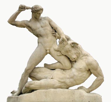 In doing so, the Minotaur was freed from the social conditioning of Parental Guidance or Societal law; making the Minotaur Pure, in that he had nothing but his own intuition for guidance. Though I don’t necessarily think that the Minotaur is violent or evil; these traits, I think, were imposed upon the Minotaur by those condemned to the darkness of the Labyrinth there after. These shallow people, lost in the dark, would surly stumble upon the beast and be stricken with terror and violent inclination, but these traits were reflections of themselves. They imposed their own ugliness upon the Minotaur, so the Minotaur became a mirror of their own predisposition.