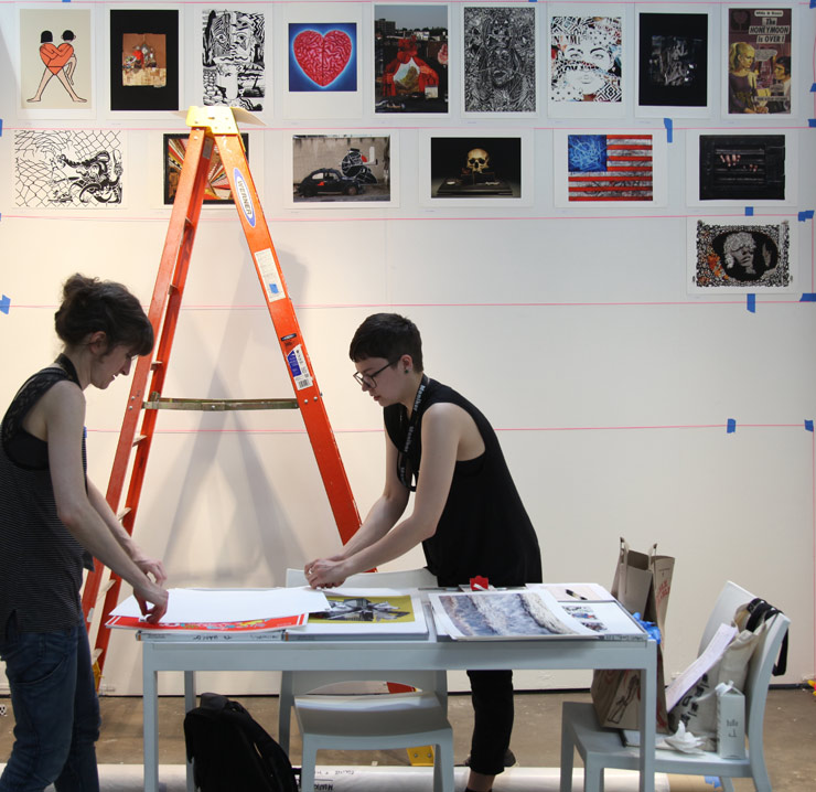 As the preparations for Moniker’s debut in NYC got underway we visited the location and found an energetic team busy at work helping the many artists and the galleries who represent them transfixed with the task of setting up shop, build the installations and paint the walls outside. Here’s a peek for you.