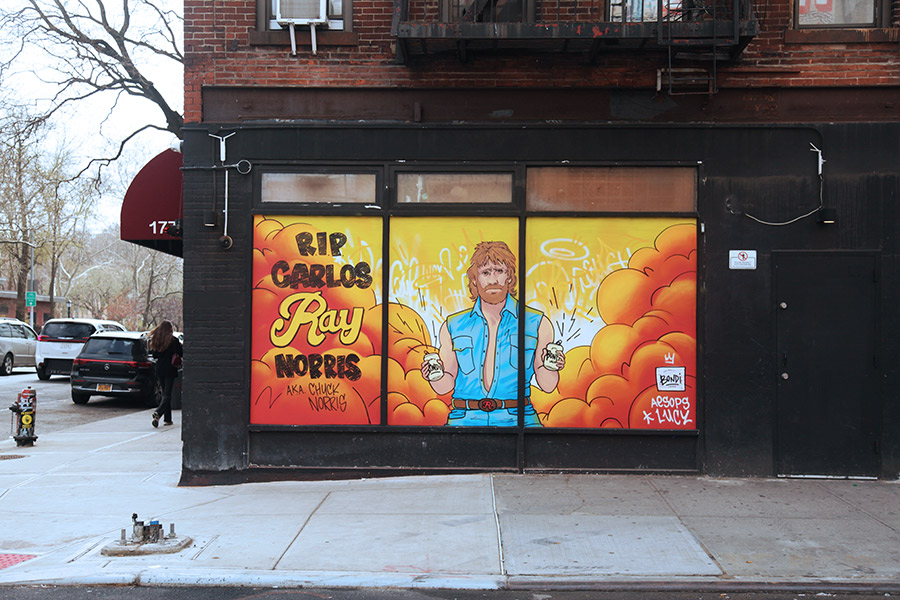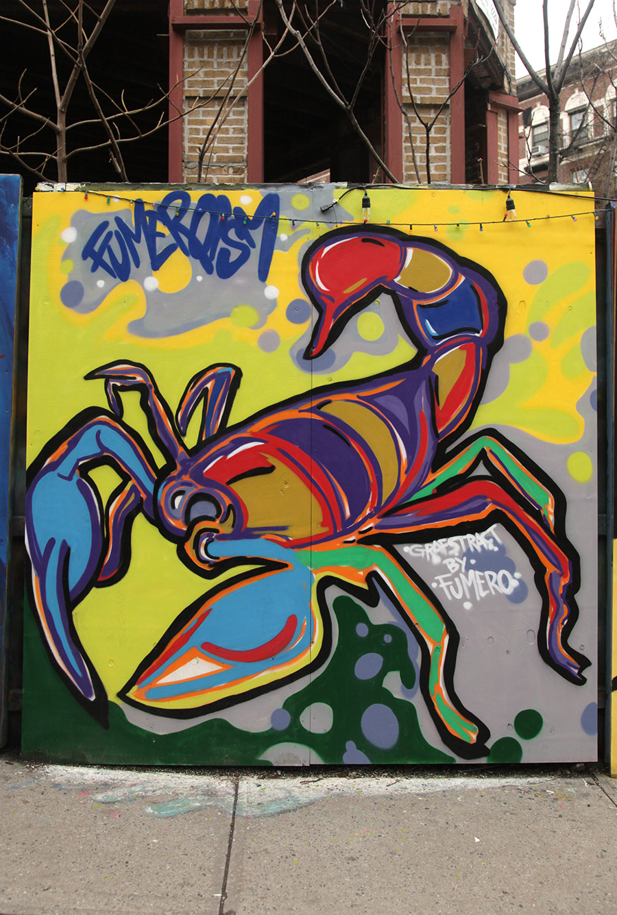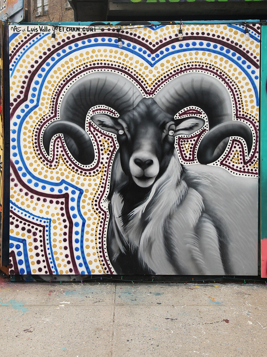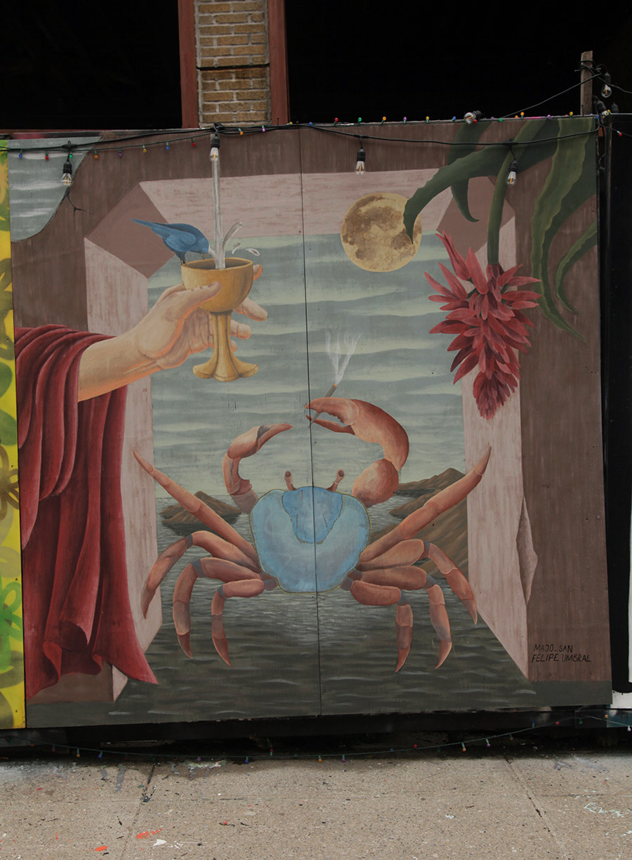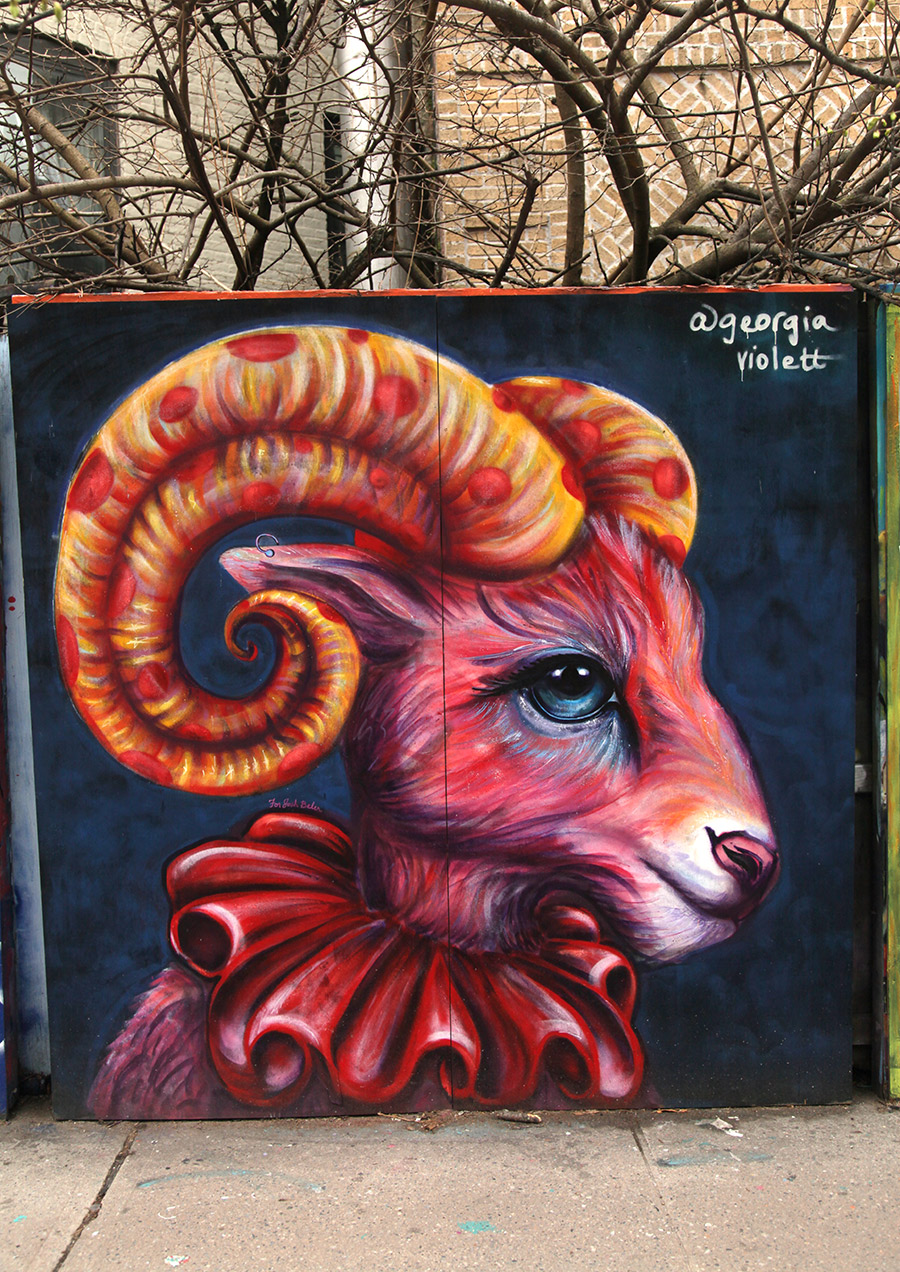 This week, we focus on some of the recent panels from a community wall project that consistently refreshes the view for people in the Prospect Heights neighborhood of Brooklyn. Founded in 2015 by artist and curator Jeff Beler, who developed the site after securing permission to transform construction fencing around a fire-damaged, long-abandoned building into an open-air mural space. The project, initially organized with curator Frankie Velez, operates as a recurring, theme-based installation refreshed roughly twice a year, bringing together a mix of established and emerging muralists to produce site-specific work across multiple panels. A community-based initiative, Underhill Walls has grown into a visible neighborhood fixture and a broader hub for mural production, emphasizing collaboration, accessibility, and artist “chemistry” in selection for the rotating roster.