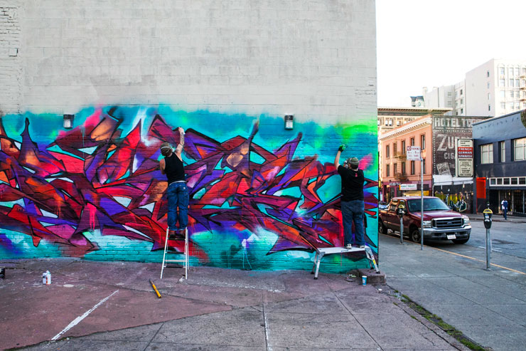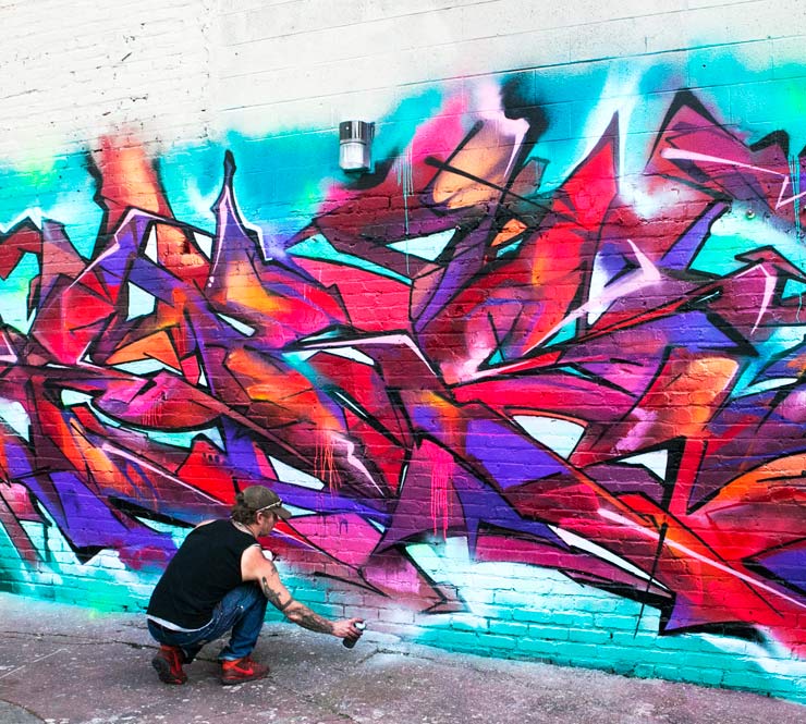 Graffiti, being an abstract art form in its nature, lends itself to pure abstraction. Experimentation with the letterform usually takes place more with color and shape than it does conceptually or from a representational perspective. Additionally with the birth of Street Art it opened up the playing field a bit. Artists now were forced to compete visually with representational imagery on walls. It has allowed many artists to leave letterform and the rectangular space of a piece or even “wild style”. The horizontal rectangle was replaced with the square or vertical rectangle – that also pushed for the evolution of the artist.