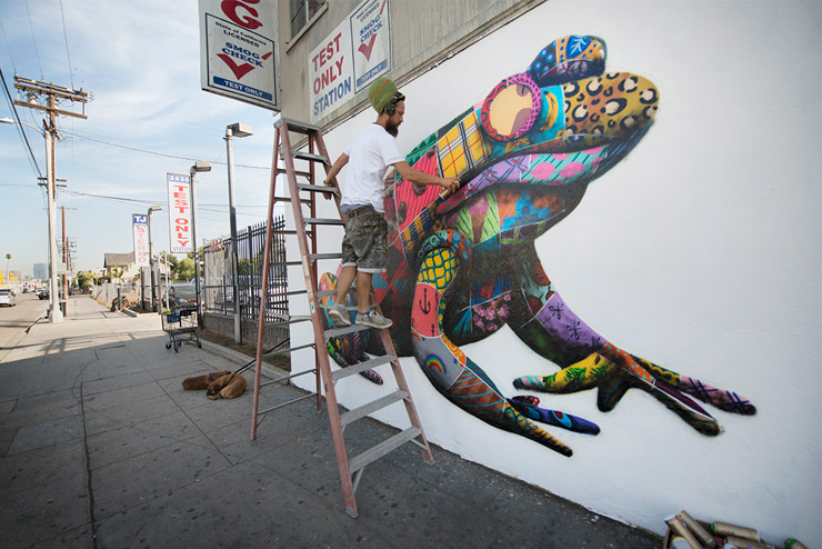 Louis Masai: The Art of Beeing USA Tour. Yellow Legged Frog. 90% have disappeared in the last 100 years. Downtown, LA. November 2016. (photo © Lmnotree)