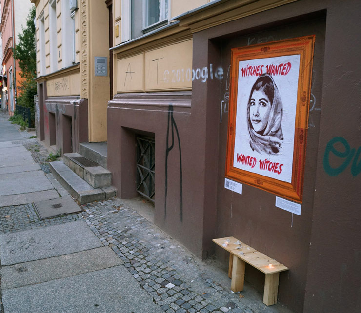 A riveting interactive witch hunt, complete with matches, candles, smart phones and QR codes, has just begun on the streets of Berlin – the creation of conceptual Street Artists Various & Gould. Better yet, you know many of the 13 ‘witches’, as they are people from modern times who have suffered fates of being accused and depicted as evil.