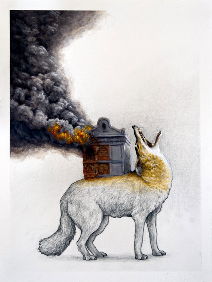 It is my belief, and the belief of many people in the area, that the City and developer’s plans are to destroy the collapsed identity of the area rather than help it once again thrive. In the piece, Troy is holding together three structures which symbolize the fading history of the area, probably never to be revitalized. From left to right, a burned down abandoned multi-purpose center at the top of Cherry Hill which has been turned to a methadone clinic, some Westport-style row houses along Annapolis Boulevard, and the Section 8 building called The Cherry Hill Homes.”