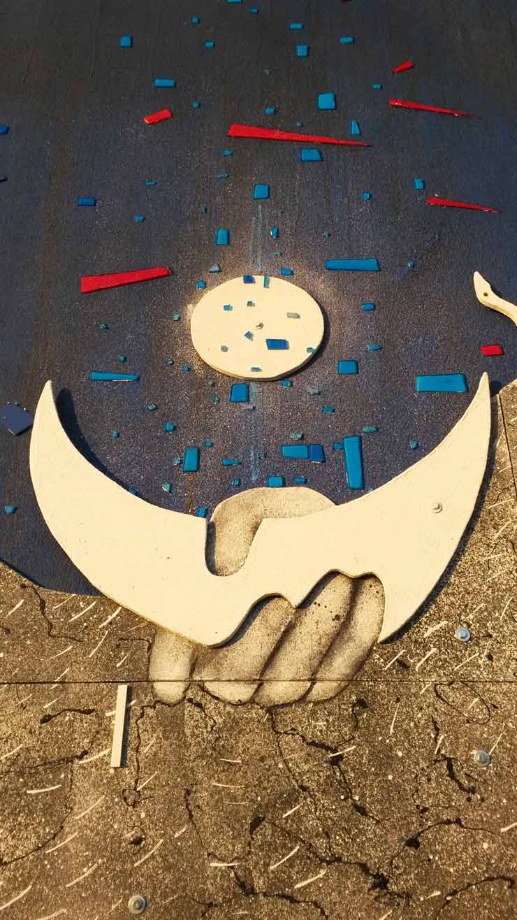 The public art program has been looking for alternatives to the classically painted mural and encouraging artists to experiment with techniques and materials and Tusz’ new work evokes a weightlessness in her new look into a tale told across a submerged and twinkling marine atmospheric.