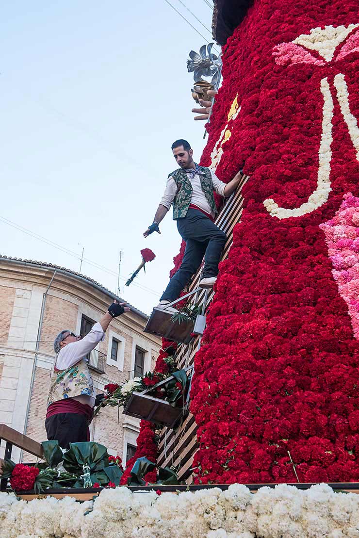 She captured the building of the Virgin with flower bouquets and a number of politically charged sculptures depicting Donald Trump, Vladimir Putin, and even Kim Jong-un. She also talks with great admiration about the Fallas Queens with their full Courts of Honor followed by standard bearers and marching bands in a ceremony of beauty – the offerings to Our Lady of the Forsaken. With costumes and flower bouquets as the prime attraction, these marchers are keeping your attention in an entirely different manner than a roaring fire, but your heart may still burn.