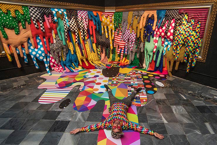 Okuda collaboration with Agostino Iacurci, Bruno Pontiroli and Kristen Liu-Wong for Theriomorphism. Galeria Kreisler. Madrid. February 2019. (photo Jaime Rojo)