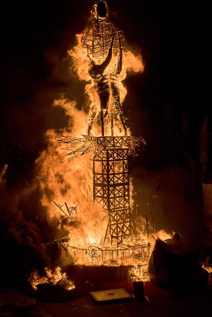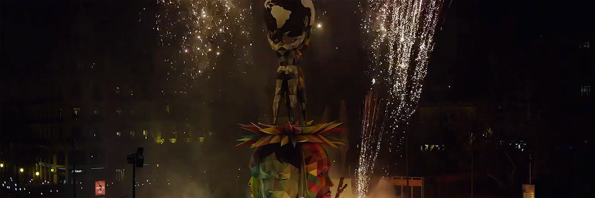 Meanwhile the apex of the 5 nights of fireworks from March 14 to 19 is televised countrywide and this year in the Plaza del Ayuntamiento thousands of spectators stood back to watch OKUDA’s largest sculpture go up in ravaging flames.