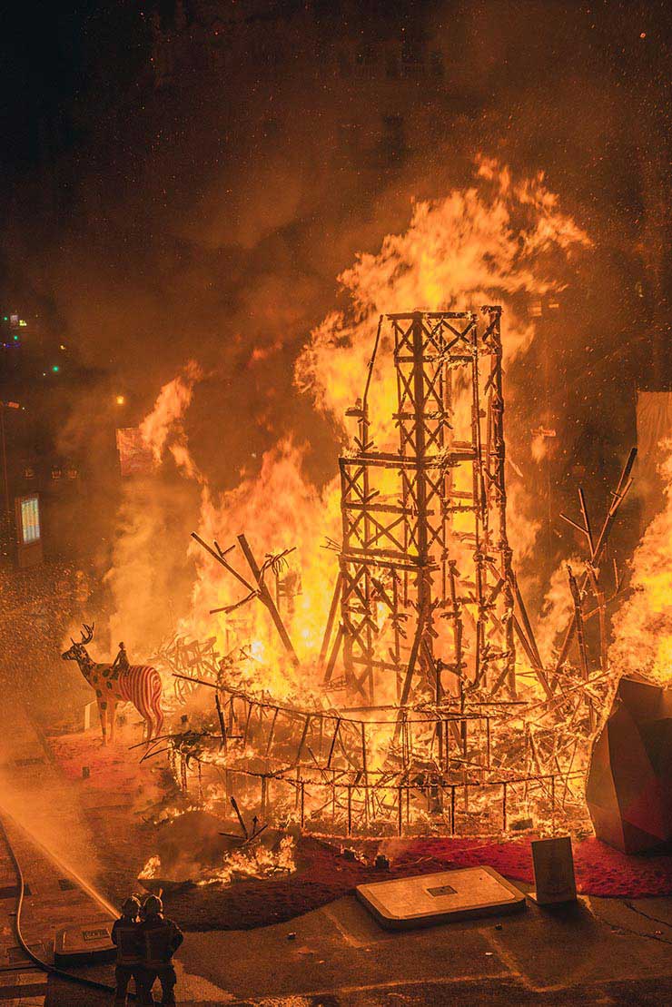 “It had the most prestigious location in front of city hall,” says famed street photographer Martha Cooper, who was a special guest of OKUDA and who captured many of the events involved in preparation and the crescendo of destruction that followed days of intermittent firecrackers, marching bands, and incredible traditional costumes.