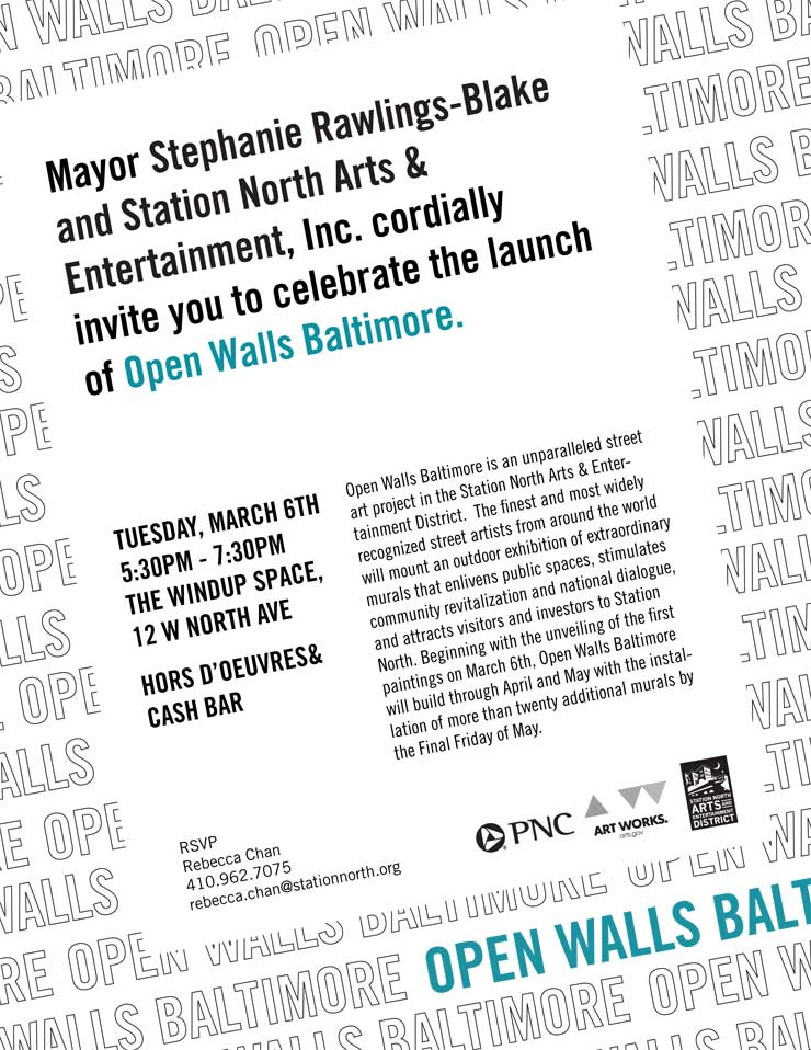 Freshly graduated, the talkative 23 year old artist with a natural knack for organizing decided to stay in B’more and plot a Street Art revitalization of sorts. With Ben Stone and Rebecca Chan of Station North Arts & Entertainment as partners, the trio secured monetary backing and city support for 20 artists to come and paint murals this spring. When asked if the grand outlay of almost a hundred thousand dollars is a civic/private program, Gaia is quick to answer, “Totally private. I guess you could call it civic because they’re non-profit.”
