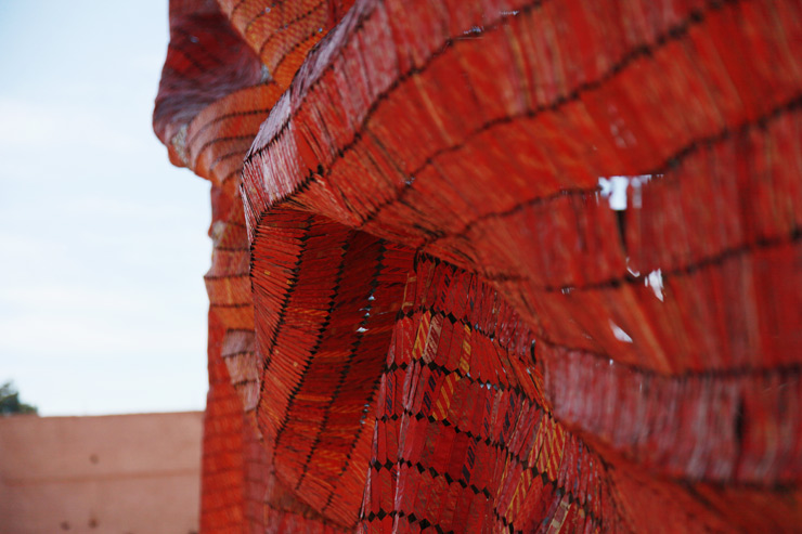 El Anatsui’s monumental tapestry at the Palais El Badii for the Marrakech Biennale 6 in Marrakech, Morocco. Detail. (photo © Jaime Rojo)