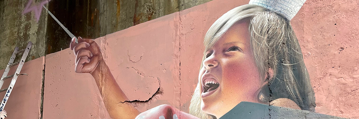 A native of Kirovske in the of Donetsk Region, Ukraine, muralist Sasha Korban says this new work under a bridge in Kyiv is called “Little Magic.”