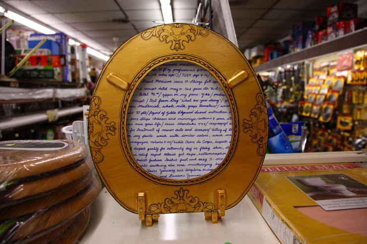 “I think it’s a real turning point as far as seeing three dimensional things,” says Street Artist and fine artist Ben Frost while hand painting text on the side of the large facsimiles of pharmaceutical boxes that he’s creating for the UN Art Mile. “I think sculptures and installations have been paving a way forward for Street Art.”