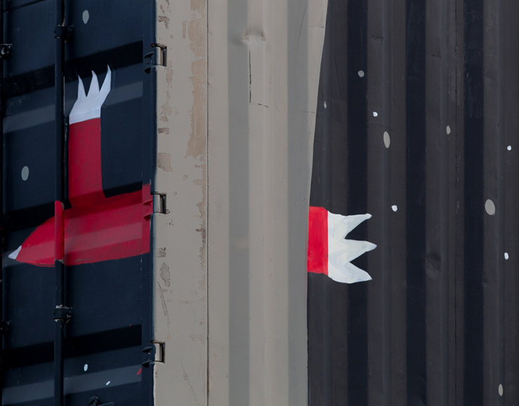 “The contested Banksy and Co. exhibition contains, among many other works, walls removed from a privately owned abandoned building in Bologna that were painted by BLU. Displaying the walls and his artwork without his consent so angered the painter that he rallied artists and activists to help him snuff out all his remaining murals and paintings in this Northern Italian city last week. (See A BLU Buffer Talks About the Grey Action in Bologna)