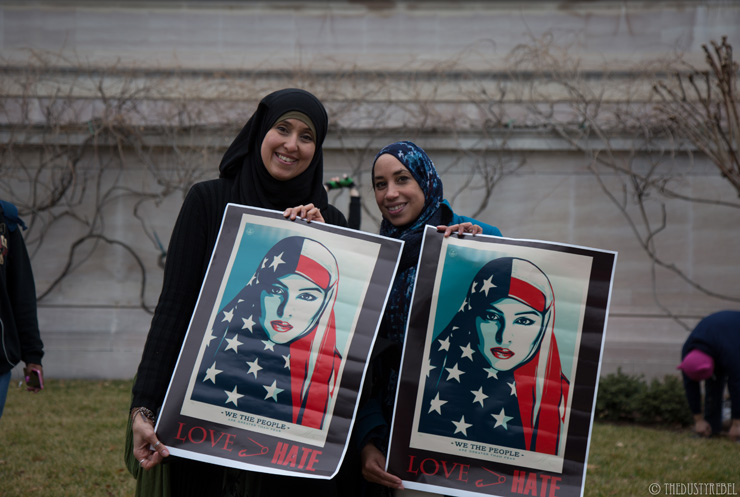 One of Shepard Fairey’s newest posters proved inspirational to many in the Muslim community as well as many supporters, some of whom donned US flags as hijabs. Women’s March On Washington, DC. January 21, 2017. (photo © The Dusty Rebel)