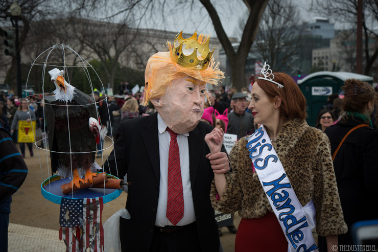 King of beauty shows grips the arm of Miss Handled. Women’s March On Washington, DC. January 21, 2017. (photo © The Dusty Rebel)