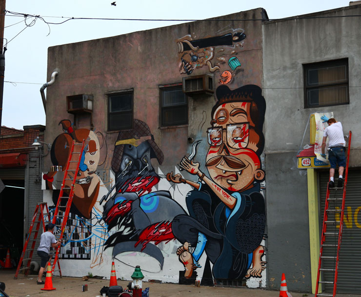 The Street Art duo of Sheryo and Yok plumb the depths of the urban environment in their travels, getting to know a culture and the people there – a full immersion practice that helps them conceptualize and fashion street murals, gallery shows and exhibitions that utilize the traditions, lore, language, and even the skills of local tradespeople.